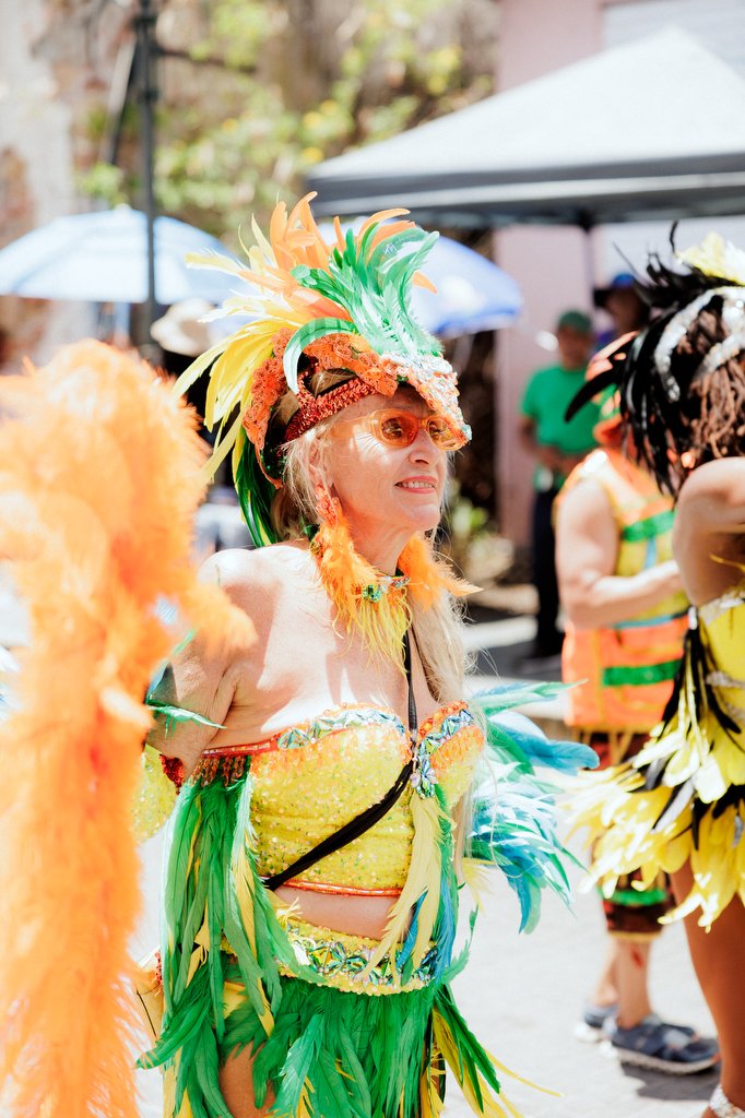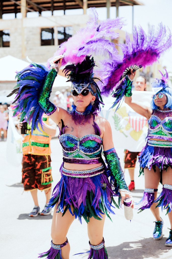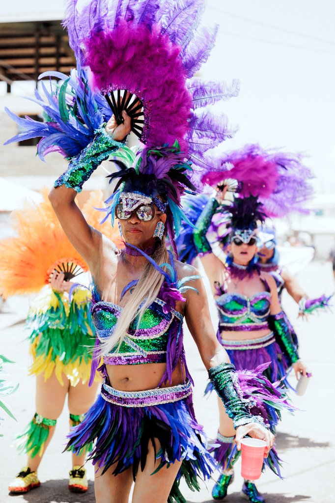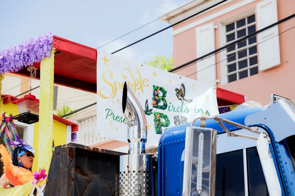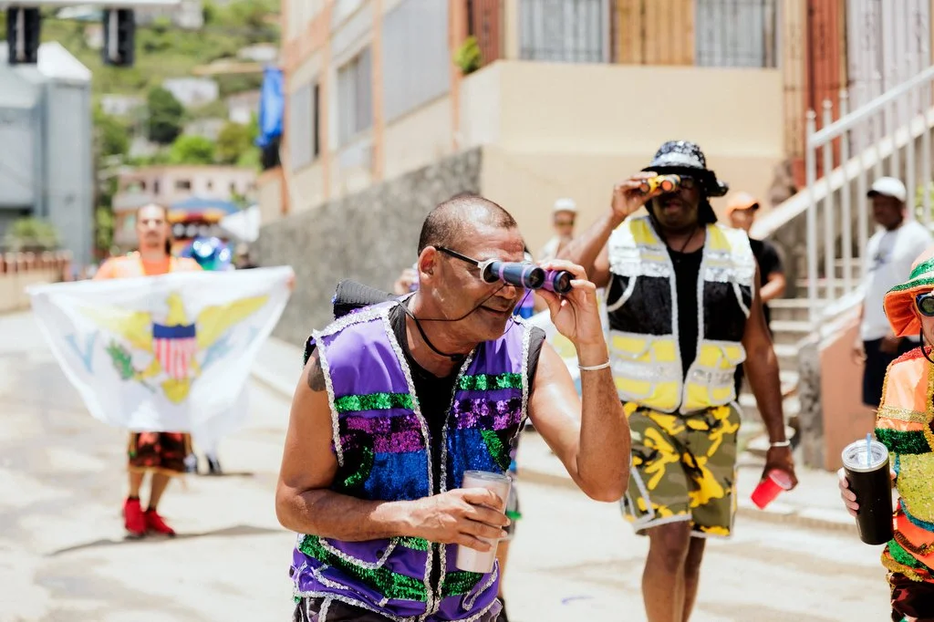 They danced throughout the parade route in feathers made up of hues of emerald, violet, and indigo to represent the bananaquit, humming, and parakeet birds - USVI's National Birds. And along side them were birdwatchers with binoculars.